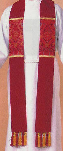 Priest/Minister's Stoles are available with Full Fabric (shown left), Chest Panels (shown with Red Coronation Tapestry)or Knee Panels (shown with Bernini Tapestry). Priest/Minister's Stole comes with tassels (shown left) and Deacon's stoles come either with or without tassels.
